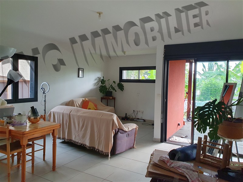 Spacieuse et lumineuse Villa F4 de 110 m² (hors varangue) meublée sur deux niveaux comprenant au rez de chaussée, un grand séjour de 40 m² avec cuisine américaine aménagée et équipée (placards, plaque à gaz et hotte) donnant sur une varangue en caillebotis de 30 m² avec accès à un jardin (gazonné et clôturé), un cellier, une chambre parentale de 15 m² (avec douche à l'italienne, meuble sous vasque et placard), un wc séparé. Ensuite l'étage s'organise autour de deux chambres climatisées de 12 m² aménagées de placards, une grande salle de bains moderne (avec baignoire et meuble sous double vasque), un autre wc séparé, 2 places de parking, portail automatique, interphone, chauffe-eau solaire, le tout sur 400 m² de terrain. Cette villa se situe dans endroit calme à proximité des écoles et des commerces avec un accès à la 4 voies en 5 minutes.