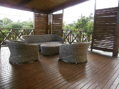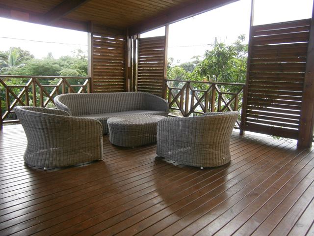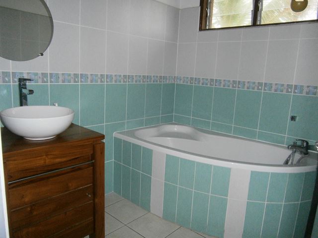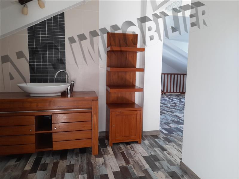 Sur Étang Salé les Bains, grand appartement T4/5 de 120 m² sur deux niveaux avec jardin privatif en contrebas, situé à l'étage d'une villa divisée en deux logements avec entrée et jardin indépendant, à proximité à pied de la plage, des écoles et des commerces, et avec un accès pratique et rapide à la 4 voies en 2 minutes. L'étage (avec parquet au sol dans toutes les pièces) s'organise autour d'une grande pièce d'environ 40 m² et une chambre parentale climatisée (avec douche, wc et rangement). Ensuite au rez-de-chaussée, deux chambres climatisées, une salle de bains avec baignoire, un wc séparé, un séjour avec cuisine américaine aménagée et équipée (placards, plaque à gaz et hotte) donnant sur une varangue en bois. Et enfin en contrebas, un grand cellier avec étagères et une partie pouvant accueillir moto et vélo, un jardin, portail manuel, chauffe-eau solaire et plusieurs places de stationnement.