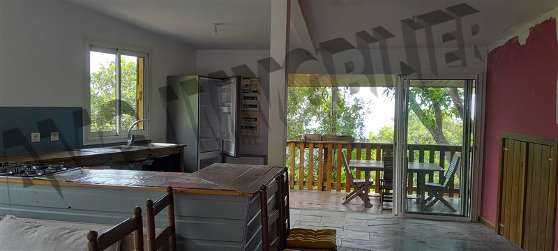 Villa mitoyenne et meublée de type F2/3 de 90 m² habitables + grande varangue et terrasse en bois, située dans un environnement calme et verdoyant, à 530 mètres d'altitude et à moins de 15 minutes de la 4 voies. Il se compose d'un séjour avec cuisine américaine aménagée et équipée (placards et plaque à gaz) donnant sur une belle varangue et terrasse en bois avec petite vue sur l'océan, une salle d'eau avec douche, un wc séparé, une chambre de 12 m², une pièce de 20 m² (bureau, chambre d'ami ou salle de jeux selon besoin), petit cellier, ce bien bénéficie de deux places de stationnement et l'eau est comprise.