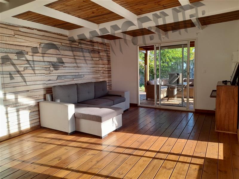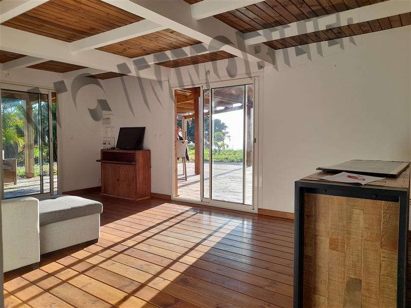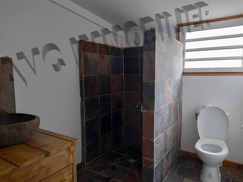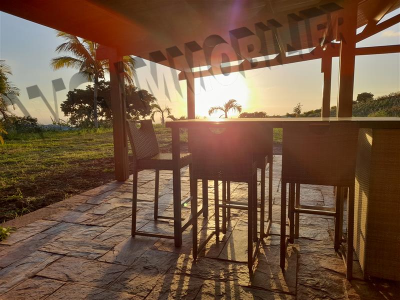 Villa F4 meublée de 90 m² + une varangue de 110 m² avec vue sur l'océan, située dans un environnement calme et verdoyant, à moins de 10 minutes de la 4 voies. Elle se compose de 3 chambres (dont une parentale de 20 m² avec douche et wc), une cuisine aménagée et équipée (placards, plaque à gaz, four, frigo, machine à laver et ustensiles de cuisine) donnant sur l'extérieur, une autre salle d'eau (avec douche à l'italienne et wc), un séjour avec accès direct sur la spacieuse varangue et le jardin d'environ 1.000 m², chauffeau-solaire et plusieurs places de stationnement.