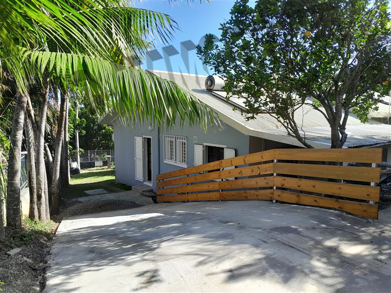 Villa mitoyenne F4 de plain pied de 110 m² (dont 20 m² de varangue) entièrement rénovée, située à moins de 10 minutes de la Route des Tamarins et à 5 minutes du centre ville des Avirons et de Piton Saint Leu. Elle se compose de trois chambres de 9 m², une salle d'eau avec douche à l'italienne, wc séparé, un séjour avec cuisine américaine aménagée et équipée (placards, plaque à gaz et hotte) donnant à l'arrière sur une varangue de 20 m², un jardin gazonné et arboré à l'avant, chauffe-eau solaire, portail manuel et plusieurs places de stationnement. Eau et électricité comprises.